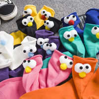 卡通3D立体大眼睛袜子全棉卷边中袜筒网红鸡大眼仔袜子芝麻街女生
