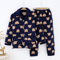 瑚珊绒秋冬款冬日睡衣套装女睡裤冬甜美珊瑚舒适休闲黄色时尚款