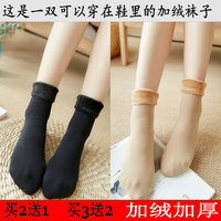 2018新款雪地袜女冬季抗寒加绒加厚肉肤色光腿短中筒袜纯棉雪地袜