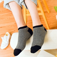 春夏季千鸟格船袜女日系全棉袜子透气网眼复古英伦风女袜学院短袜