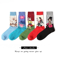 欧洲经典油画系列情侣款精梳纯棉星空蒙娜丽莎超舒适短袜中筒袜子