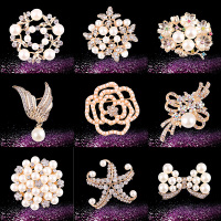 买二送一爆款韩版时尚潮流手工水晶钻雪花大颗珍珠胸针胸花女配饰