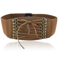 韩版流苏百搭连衣裙宽腰带女复古时尚铆钉弹力束身收腰封松紧装饰
