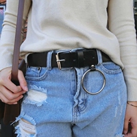 秋冬新款复古百搭纯色超大金属圆环装饰针扣pu皮带腰带女学生裤带