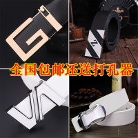 白色裤带腰带男士皮带真皮平滑扣韩版男潮流休闲百搭青年学生正品