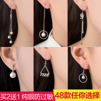 纯银耳环长款耳坠流苏珍珠耳钉女气质防过敏日韩国耳圈线简约饰品