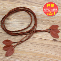 女士手工编织细腰带百搭裙子装饰细皮带韩版打结裙带腰绳腰链皮绳
