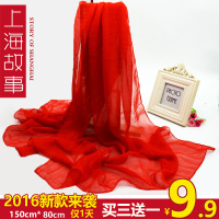 上海故事丝巾长款纯色超大围巾春夏季雪纺纱巾披肩女士防晒沙滩巾