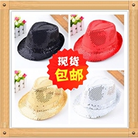 儿童表演帽子亮片幼儿舞蹈帽韩版潮英伦爵士帽男女童演出黑色礼帽