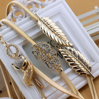 女士金属叶子对扣腰带腰链装饰弹力松紧细腰封女裙子百搭腰带包邮