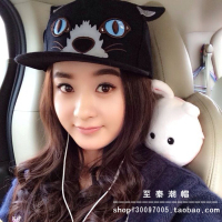 赵丽颖同款韩版猫咪竖耳朵嘻哈平沿棒球帽子女夏天可爱卡通鸭舌帽