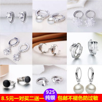 925纯银耳扣女时尚耳环气质大小耳圈韩国男女水晶耳钉防过敏耳饰