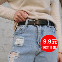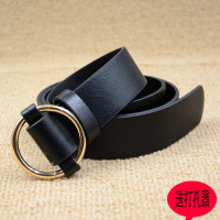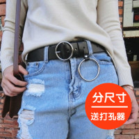 春装新款大圆环金属扣装饰女士腰带港风复古皮带潮女PU皮纯色皮带