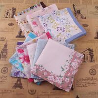 5条包邮 出口日本女士全棉手帕60支纯棉印花手绢汗巾 月季花