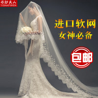 头纱新娘头纱蕾丝花瓣婚纱头纱超长3米结婚韩式长款3米软头纱