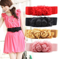 包邮配羽绒服韩版百搭雪纺超宽双玫瑰花松紧腰带女装饰配裙腰封