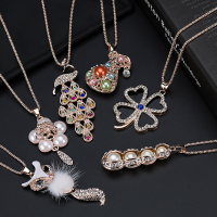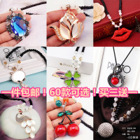 日韩小饰品四叶草装饰项链女衣服挂件水晶吊坠毛衣链配饰百搭长款