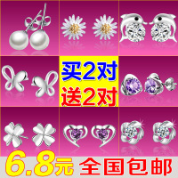 925纯银耳钉女时尚爱心形甜美耳环韩国水晶气质防过敏耳坠耳饰品