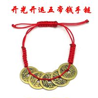 开光开运本命年铜五帝钱手链红绳脚链吉祥物男女款辟邪防小人饰品