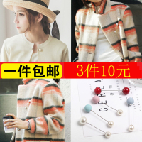 韩版简约开衫一字珍珠胸针女别针韩国百搭外套胸花披肩扣别针饰品