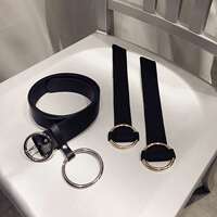 大圆环皮带女大衣女士腰带港风复古皮带潮黑色裤皮带白色圆环腰带