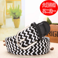 新款帆布针扣弹力裤腰带男女士休闲皮带时尚百搭编织松紧款式
