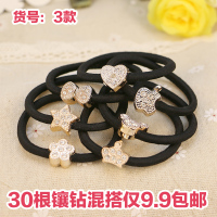 韩版扎马尾发圈 镶钻头饰发绳发饰日韩彩色扎头发头绳 高弹力皮筋