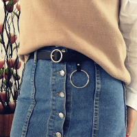 皮带女黑色简约韩国百搭休闲圆环针扣女士韩版腰带女款裤带学生