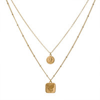 【福贝奇】叠带双层锁骨项链不易掉色合金欧美人像硬币圆牌毛衣链