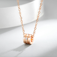 韩版镀18K玫瑰金罗马数字双环项链女韩国百搭彩金短款锁骨链饰品