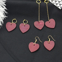简约耳饰品 酒红色木质桃心耳坠复古爱心质感耳环 无耳洞耳夹