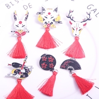 复古中国风千纸鹤系列耳环耳夹 古风酒红色流苏耳坠和风汉服耳饰