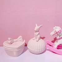 韩国日系软妹少女心蝴蝶结爱心复古小兔陶瓷首饰盒浮雕摆件收纳盒
