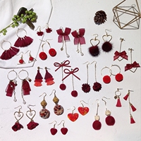 包邮日韩版气质酒红色耳环简约蝴蝶结爱心毛球花朵流苏耳坠耳饰女