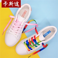 卡斯途渐变鞋带扁彩虹色女小白鞋帆布鞋运动鞋休闲潮流时尚个性