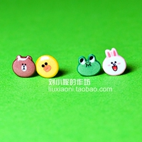 刘小妮 原创 手工动漫line可妮兔 布朗熊 热缩片 耳钉纯银 吸铁石