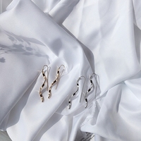 包邮韩版金属设计感曲线螺旋波浪学生百搭气质耳环长耳勾耳饰耳坠