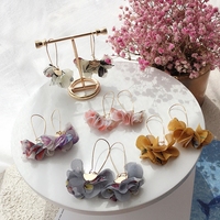 包邮韩版小仙女仙气雪纺布艺彩色花朵花瓣小清新长款耳勾耳饰耳坠