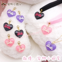 定制新款粉色紫色黑色项圈项链 梦幻芭比爱心桃心闪闪 耳夹耳环