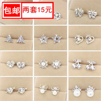 日韩水晶闪亮耳钉女百搭耳环配饰品简约气质小耳饰套装