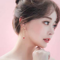 山仔韩版镂空桃心流苏925银针耳坠耳环耳饰无耳洞耳夹女