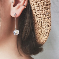 韩国气质超透亮立体方糖水晶耳钉长款简约个性百搭耳环吊坠耳饰女