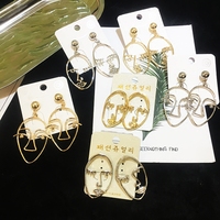 包邮 时尚夸张个性金属几何缠绕脸谱造型耳环 女气质百搭流行首饰