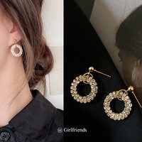 韩国带钻超仙耳环圆圈气质短款耳饰品个性超闪几何圈圈水钻耳坠
