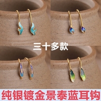 S925纯银耳钩复古镀金景泰蓝耳环银配件diy耳饰女款烧蓝银饰品