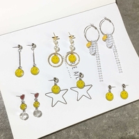 韩国可爱黄色笑脸微笑好心情长款流苏耳环百搭耳饰耳钉耳坠耳圈女