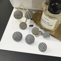 时尚千鸟格布艺圆扣耳钉韩国气质百搭格子布耳环简约潮人耳饰品女