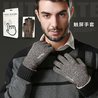 韩版秋冬季可触屏手套男士潮防滑开车保暖加绒户外骑车毛线手套