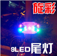 自行车后灯七彩尾灯彩色9LED灯单车安全警示灯夜行骑行配件装饰灯