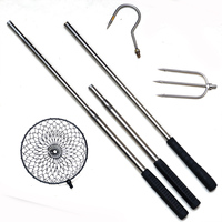 冰钓专用不锈钢带刺三叉鱼叉头鱼搭钩鱼手勾子笊篱组合工具套装